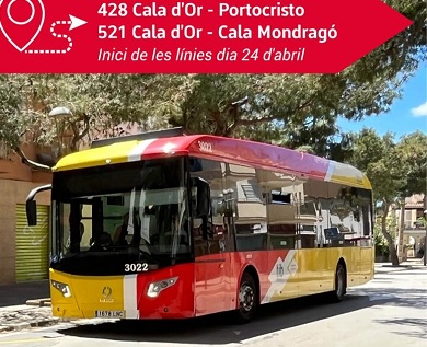 El Bus amplía el servicio de las líneas del Llevant. Se retoma el servicio que conecta Cala d'Or hasta Cales de Mallorca y Porto Cristo, se completará con la línea 425, de Cala Bona