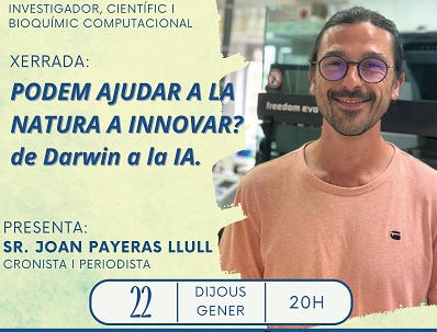 ![]() | «Podem ajudar a la natura a innovar?. De Darwin a la I.A.». Aquesta xerrada correspon al cicle «Joves amb arrels: manacorins al món» que tant d’èxit ha tengut fins aquest moment. |